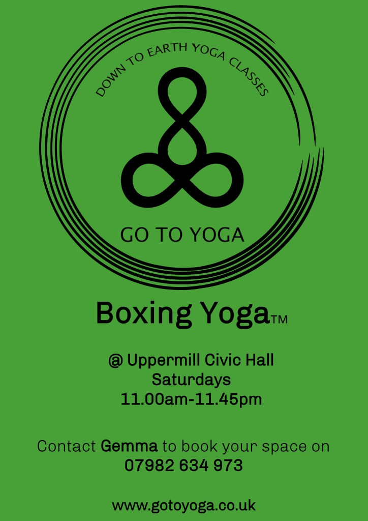 Boxing YogaTM is a sequential yoga class perfect for increasing strength, flexibility, suppleness, body awareness and overall fitness. Challenging and fun, it is a beneficial addiction that you will never want to give up…. and it is coming to Uppermill!